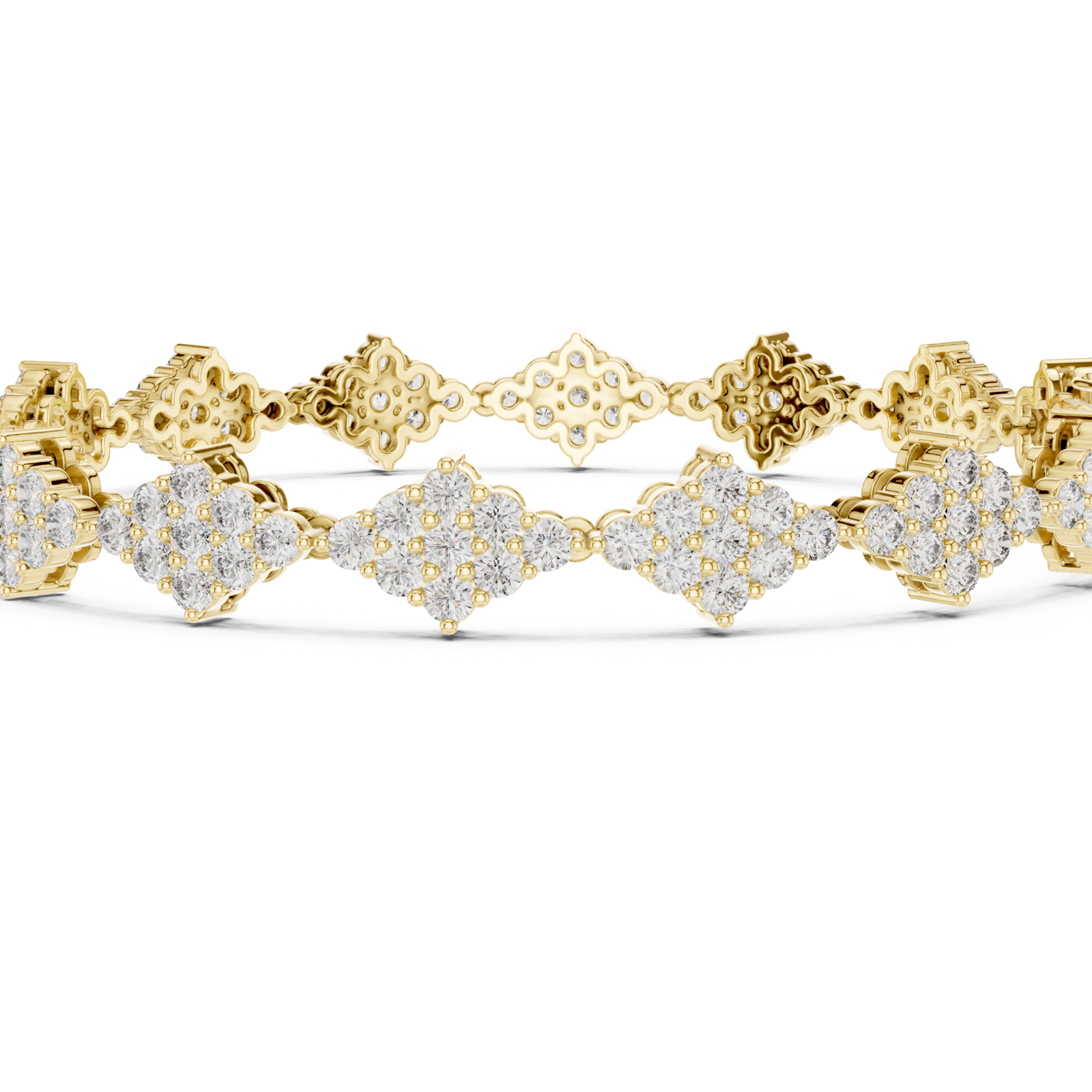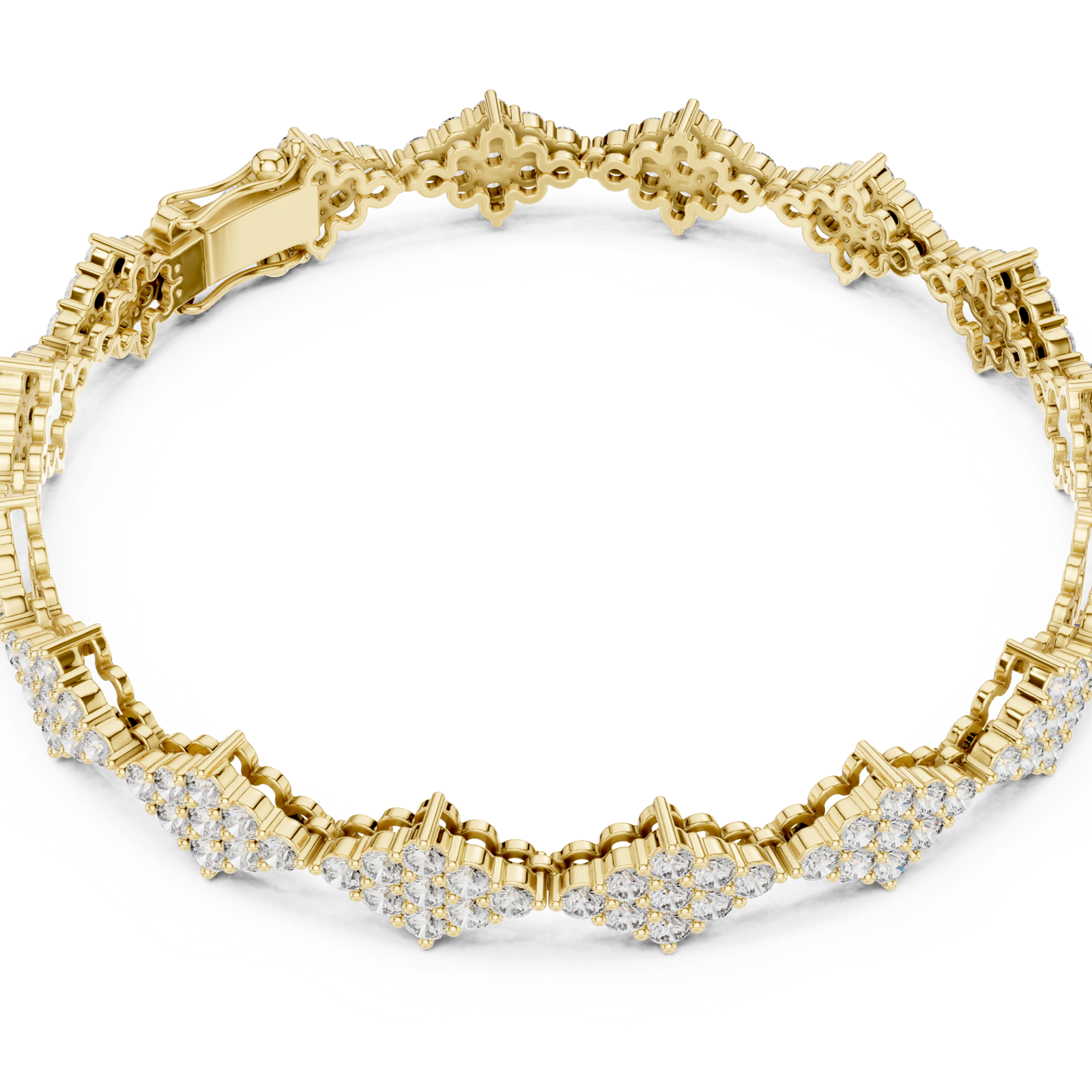 Intricate detail, balanced beautifully. This diamond cluster bracelet features repeating floral-inspired forms, each set with carefully placed diamonds to create depth and texture along the wrist. Crafted in 9K, 14K, or 18K gold, it’s a statement piece that still feels refined and composed.