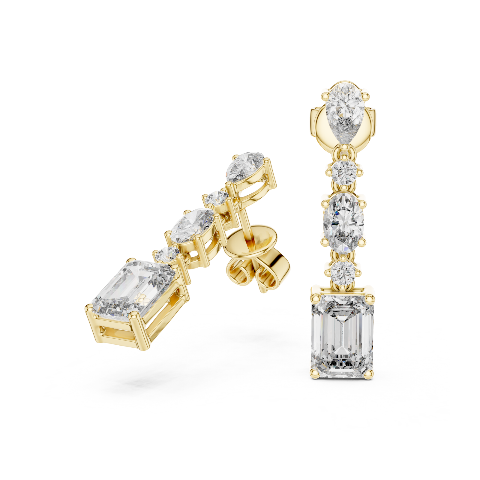 Designed to move with you. These diamond drop earrings feature a refined arrangement of mixed diamond shapes, creating a balanced play of light and form. Crafted in 9K, 14K, or 18K gold, they’re elegant yet effortless—made to stand out without feeling overstated.