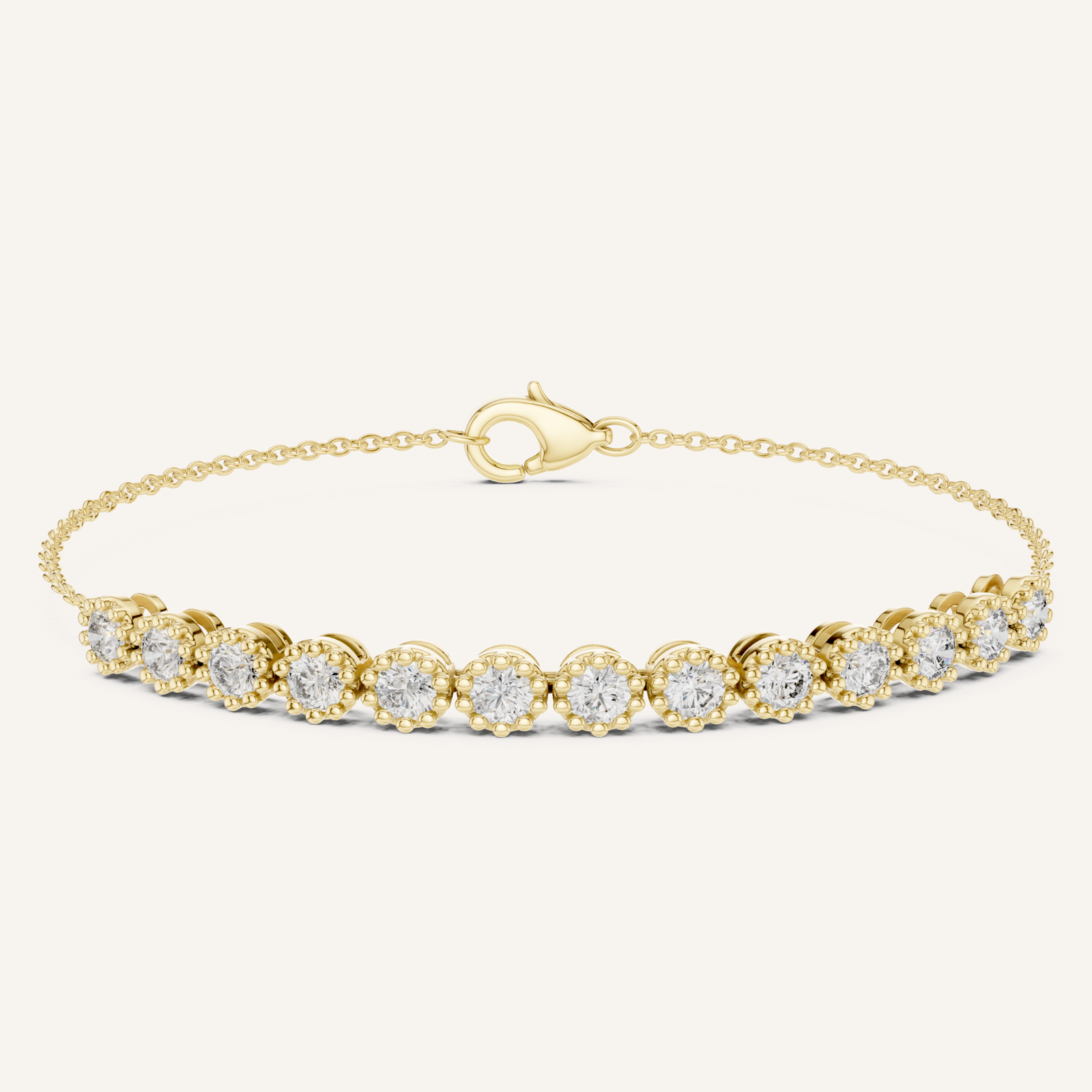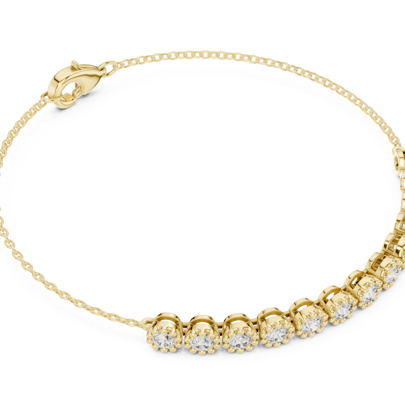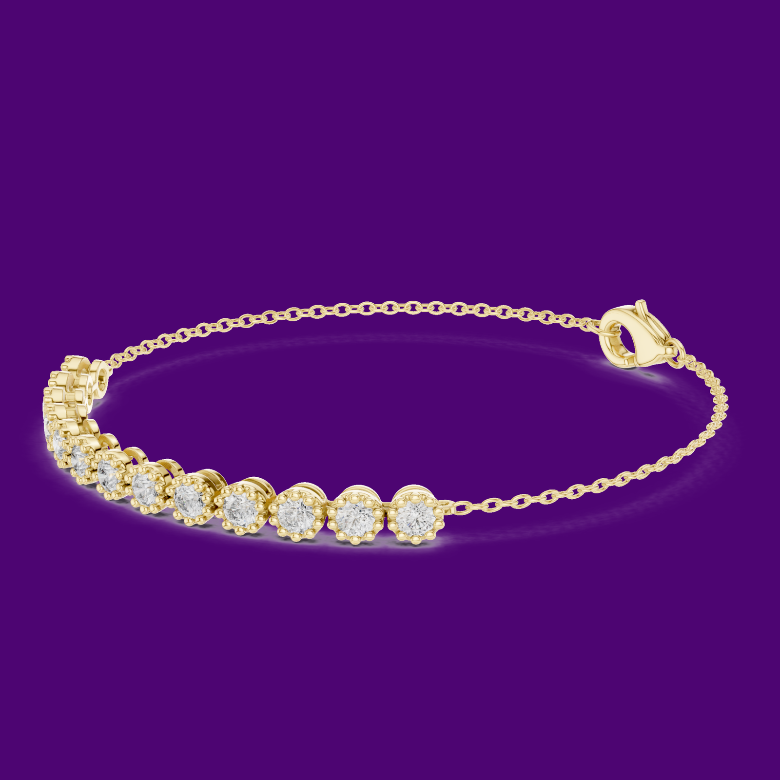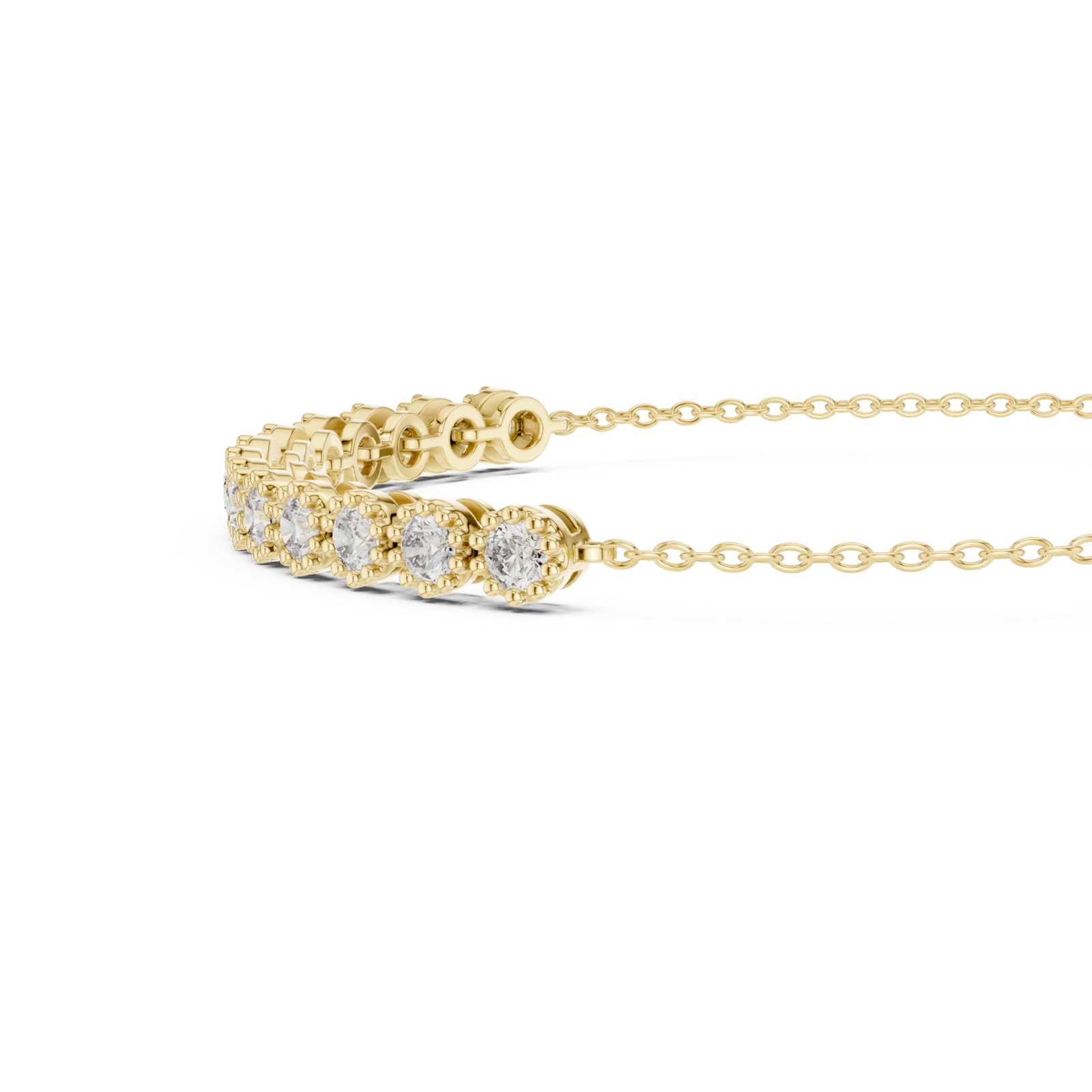 Refined simplicity, designed for everyday wear. This diamond line bracelet features a sequence of round diamonds set with subtle precision, creating a clean and balanced look on the wrist. Crafted in 9K, 14K, or 18K gold, it’s an effortless piece that layers easily or stands beautifully on its own.